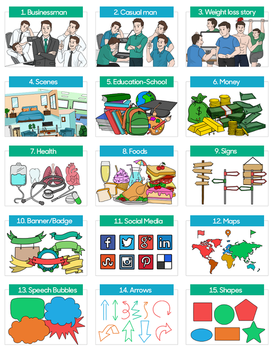 Ini lebih mudah daripada yang Anda pikirkan dengan 800+ item SVG Whiteboard yang dibuat dari 350+ karya seni unik & menakjubkan yang tersedia dalam full colour, B&W with shadow dan line art. Dengan begitu, akan memudahkan Anda membuat desain video whiteboard.